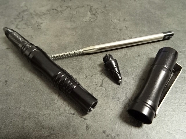 тактична ручка IMPACT RELIEF з авіаційною алюмінієвою конструкцією, що забезпечує відповідну механічну міцність і малу вагу. Головка пера оснащена гострим вольфрамовим конусом - в екстреній ситуації він розіб'є скло автомобіля. Головка має декоративні пази - її також можна відкрутити. Ручку з успіхом можна використовувати як захисний куботан, який завжди можна мати при собі - в кишені, рюкзаку або сумці. Текстурування по всій поверхні ручки забезпечує гарне зчеплення. Сталевий затискач полегшує носіння ручки.