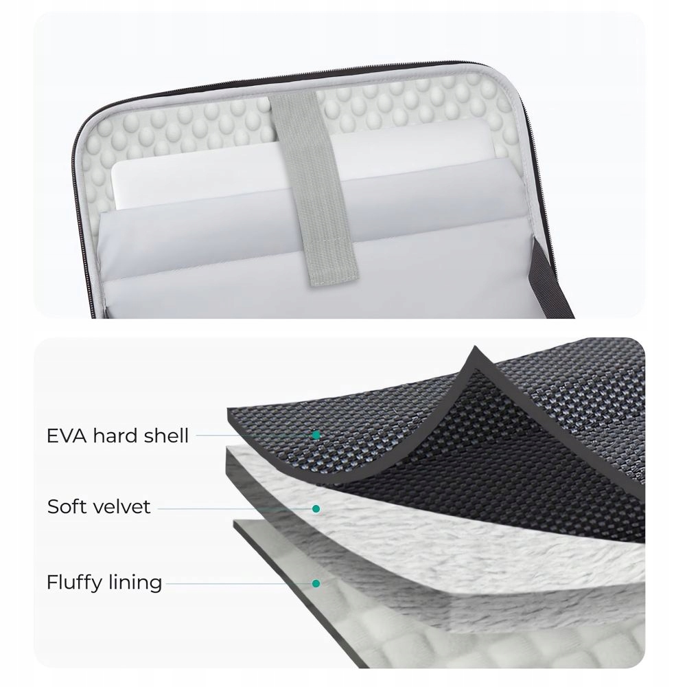 Внутрішнє оздоблення м’яким оксамитом і пухнастою підкладкою захищає ноутбук від подряпин, а продумана система зберігання з м’якою кишенею, сітчастими відділеннями для аксесуарів і знімним стабілізуючим ремінцем забезпечує повний порядок і комфорт використання.