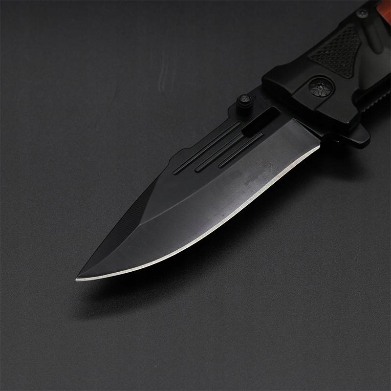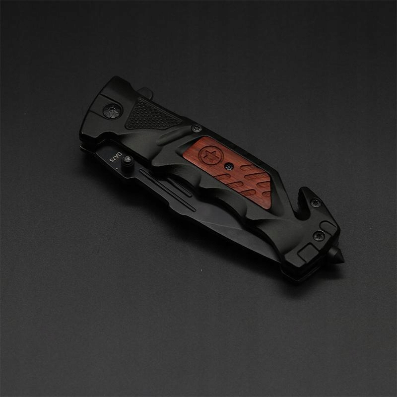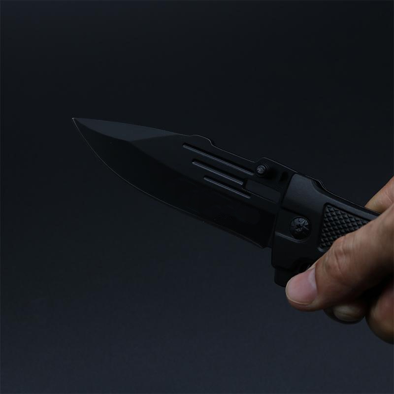 Нож можна відкрити двома способами: автоматично за допомогою вкладки, що виступає з ручки, або за допомогою двостороннього дюбеля, встановленого на лезі. пояс.