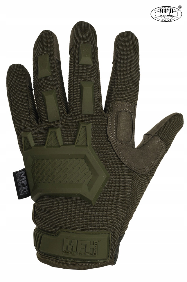 Удосконалені тактичні рукавички 3-го покоління. Продукція німецького бренду MFH. Військова специфікація гарантує безкомпромісні рішення. Сучасний дизайн, адаптований до рукопашного бою, бойових дій, чорно-зеленої тактики. Рукавички з міцних сучасних матеріалів, таких як нейлон, поліамід, поліуретан і благородна синтетична шкіра. Вони забезпечують гарне захоплення та захист рук, зберігаючи при цьому високий комфорт. Вони мають великі пальці, що відкриваються, і спусковий гачок для полегшення роботи з електронікою, захист кісточок пальців, захист фаланг і посилення рукоятки. Рукавички призначені для використання при високих і помірних температурах.