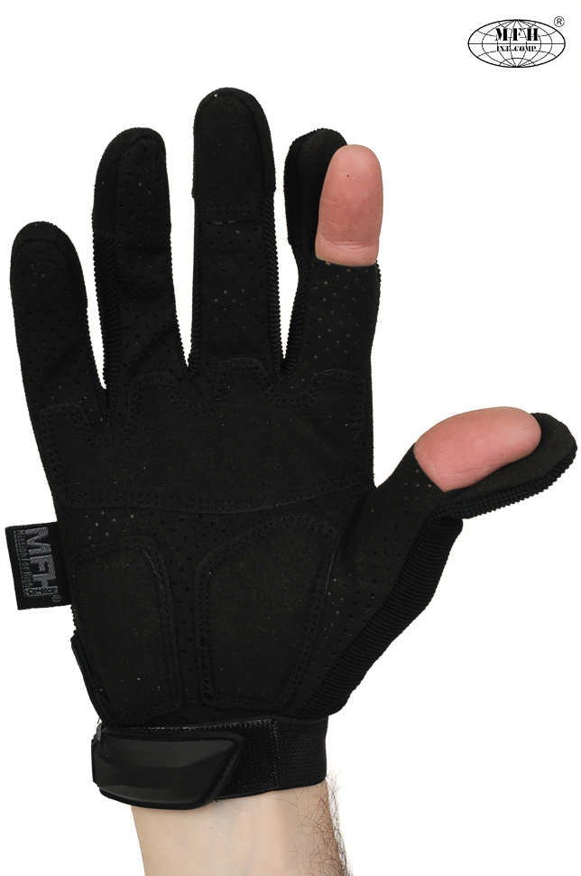Удосконалені тактичні рукавички 3-го покоління. Продукція німецького бренду MFH. Військова специфікація гарантує безкомпромісні рішення. Сучасний дизайн, адаптований до рукопашного бою, бойових дій, чорно-зеленої тактики. Рукавички з міцних сучасних матеріалів, таких як нейлон, поліамід, поліуретан і благородна синтетична шкіра. Вони забезпечують гарне захоплення та захист рук, зберігаючи при цьому високий комфорт. Вони мають великі пальці, що відкриваються, і спусковий гачок для полегшення роботи з електронікою, захист суглобів пальців, захист фаланг і посилення рукоятки. Рукавички призначені для використання при високих і помірних температурах.