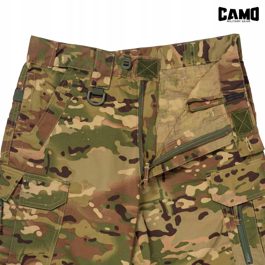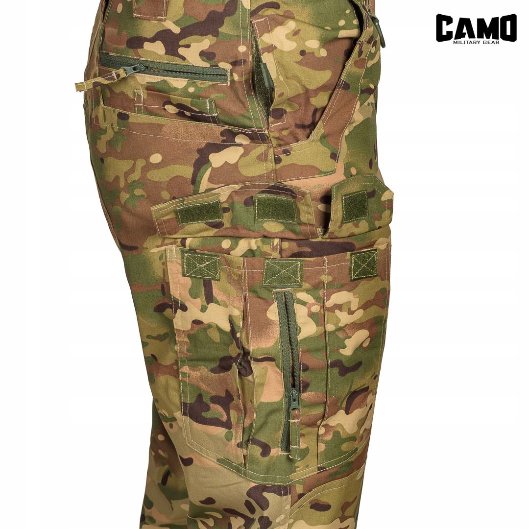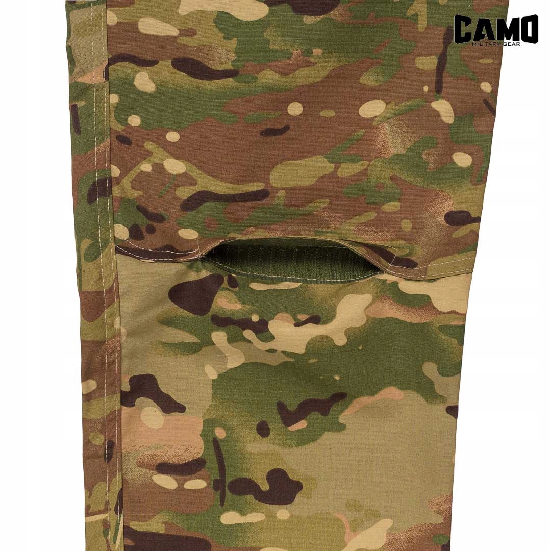 Інноваційне рішення з еластичним поясом, який регулює окружність штанів відповідно до положення користувача та дозволяє заправляти. товстий світшот в штани. Спеціальна система гумок і тунелів автоматично регулює окружність штанин на +/- 10 см. Мушка з міцною металевою блискавкою YKK, закрита клапаном. Штанини застібаються на велику липучку, що дозволяє регулювати обхват талії та канадський гудзик. Широкі шлевки шириною 65 мм стабілізують ремінь при роботі з важким спорядженням У праву передню шлевку вшито кільце D для кріплення повідця або кільця для ключів - захист від втрати дрібниць. Також посилення забезпечують великі кишені на колінах, призначені для м'яких вставок (наколінників).