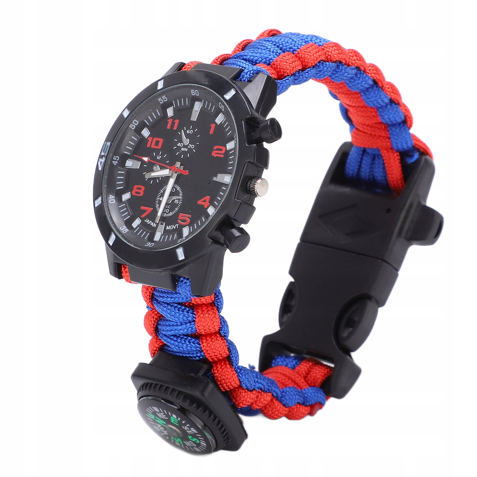 Параметри: браслет 6 в 1, з компас, різак для мотузки, годинник, кремінь і сталь, свисток для допомоги, мотузка для парасольки, що знімається