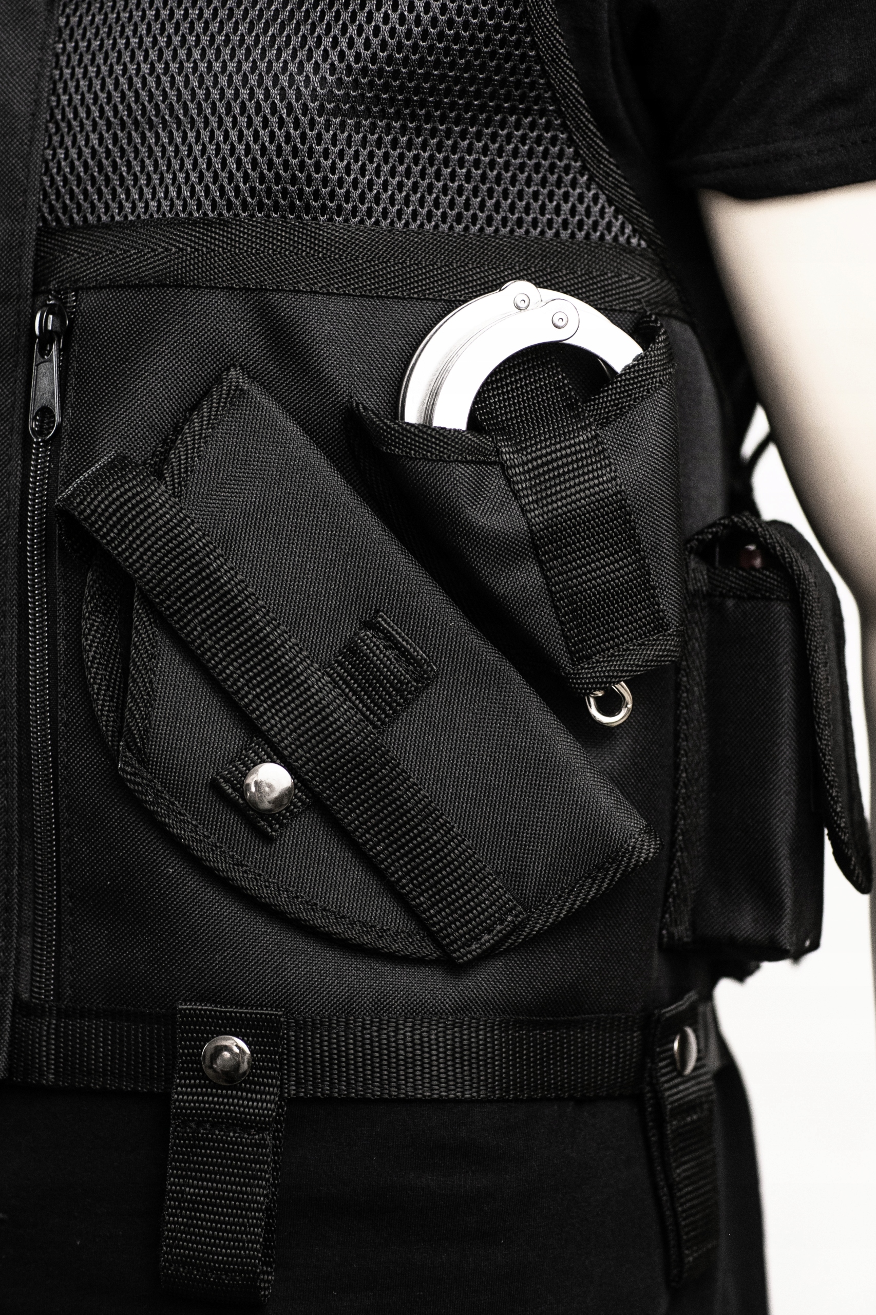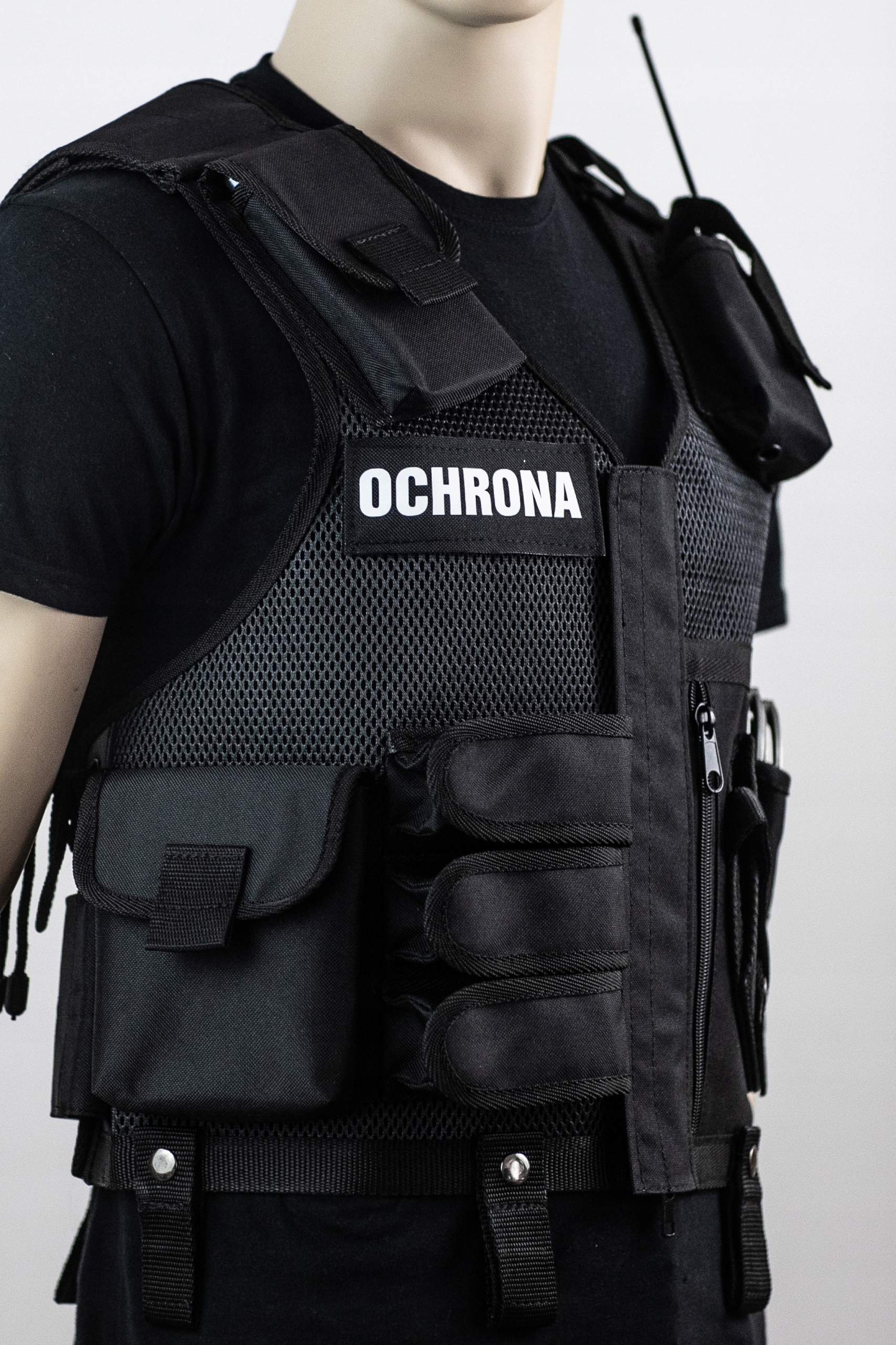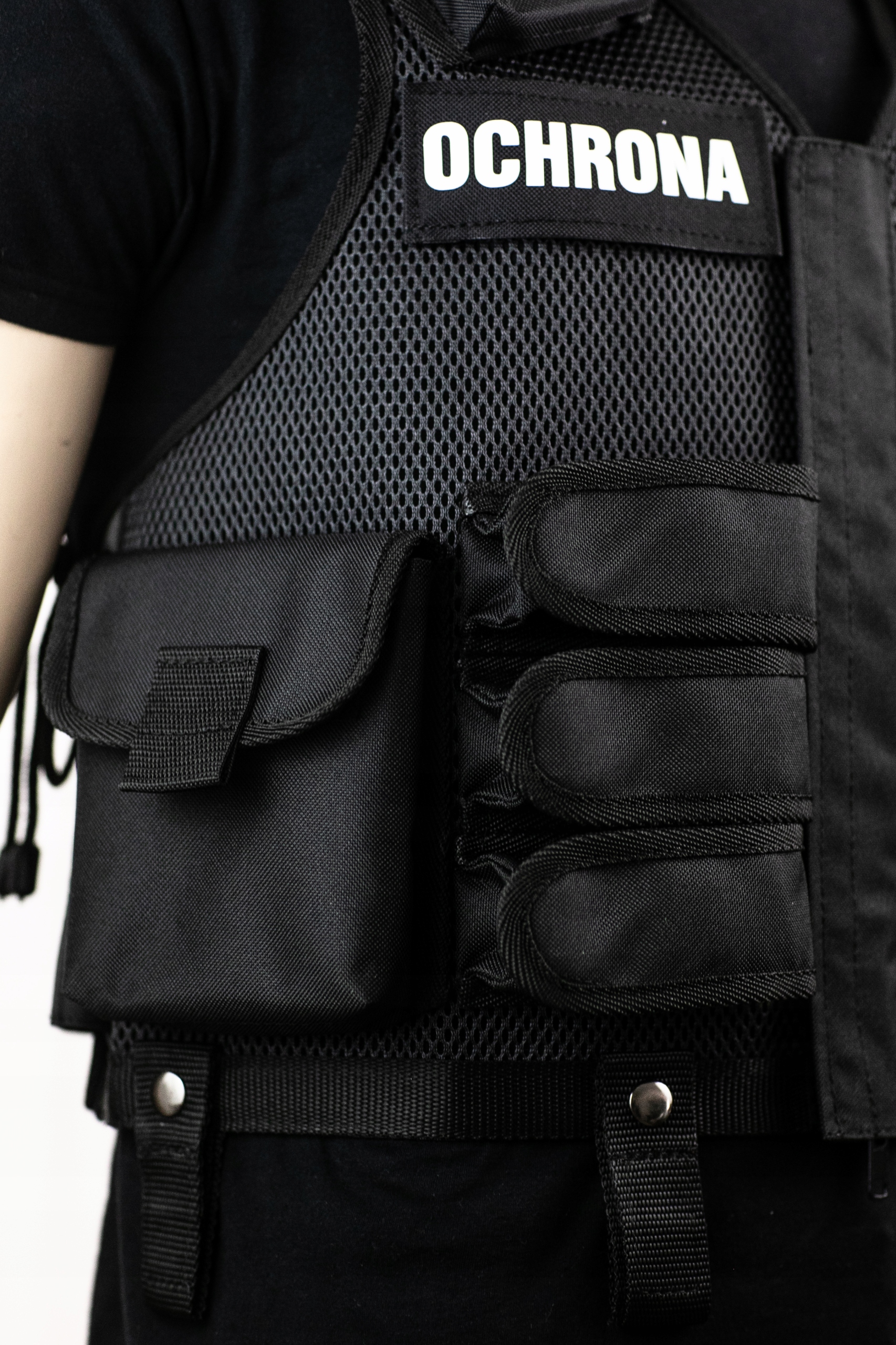 Тактичний чорний жилет для нарядів. Виготовлений із міцної сітки щільністю 282 г/м2 (+/- 5%), що характеризуєтьсявисокою міцністю. Кишені виготовлені з кордури - D600/600
