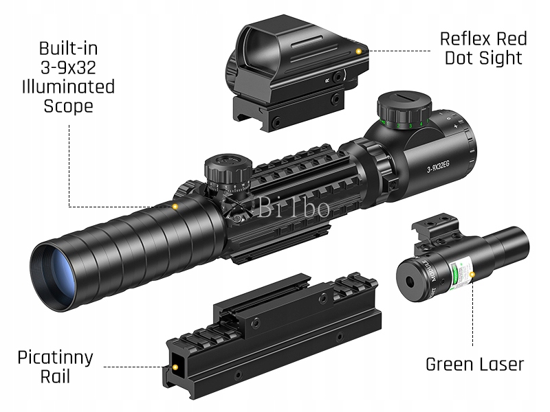 Комбінація Red Dot і телескопа 4 в 1: покращене, надзвичайно міцне дзеркало заднього виду вирішує проблему старої моделі. Поставляється з далекоміром, зеленим лазерним прицілом, червоно-зеленим точковим прицілом і вертикальним кріпленням Picatinny. Один вибір для всього, що вам знадобиться.