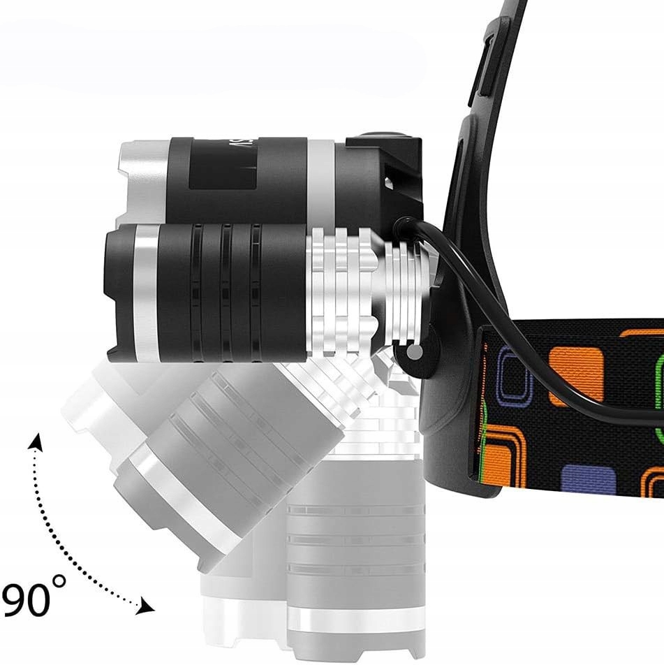 РЕГУЛЮВАННЯ КУТА НАХИЛУ 90° Налобний ліхтар має можливість встановити кут 90° для всіх світлодіодів, що робить його дуже практичним, і ви можете адаптувати його до ваших індивідуальних потреб або дорожніх умов. Регульований кут нахилу голови дозволяє розташувати пристрій прямо перед собою, щоб висвітлили дорогу вдалину. Якщо нахилити фару на 90°, ви зможете прямо бачити, що у вас під ногами.