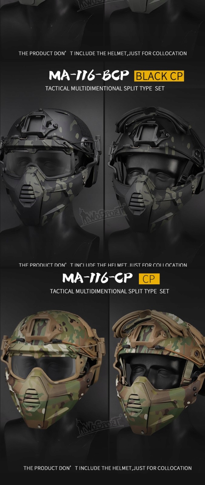 Багатовимірна поділена тактична маска та окуляри роблять зовнішнє обладнання