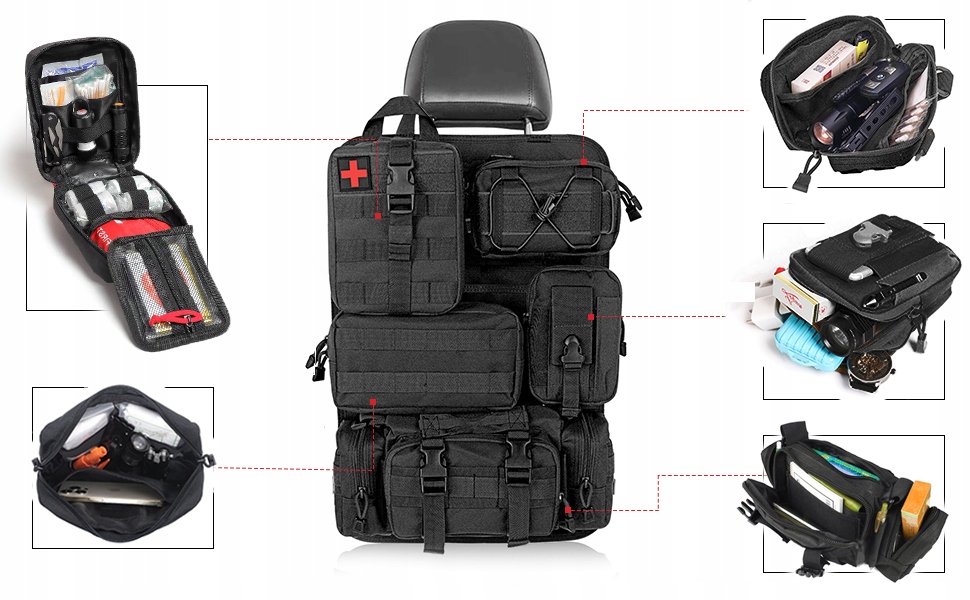Тактичний організатор для автокрісла з 5 кишенями для всіх транспортних засобів