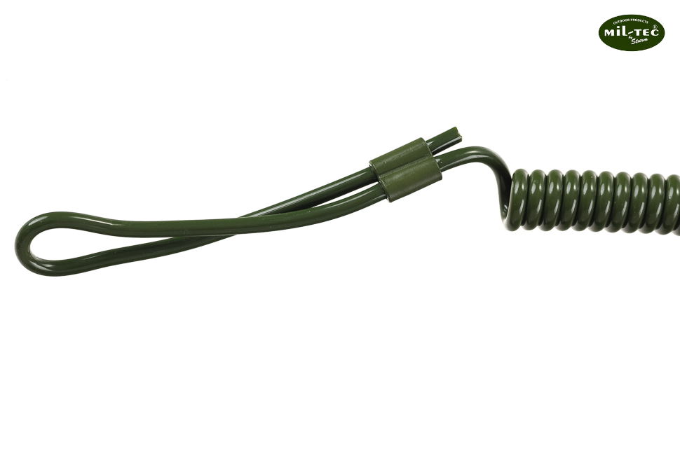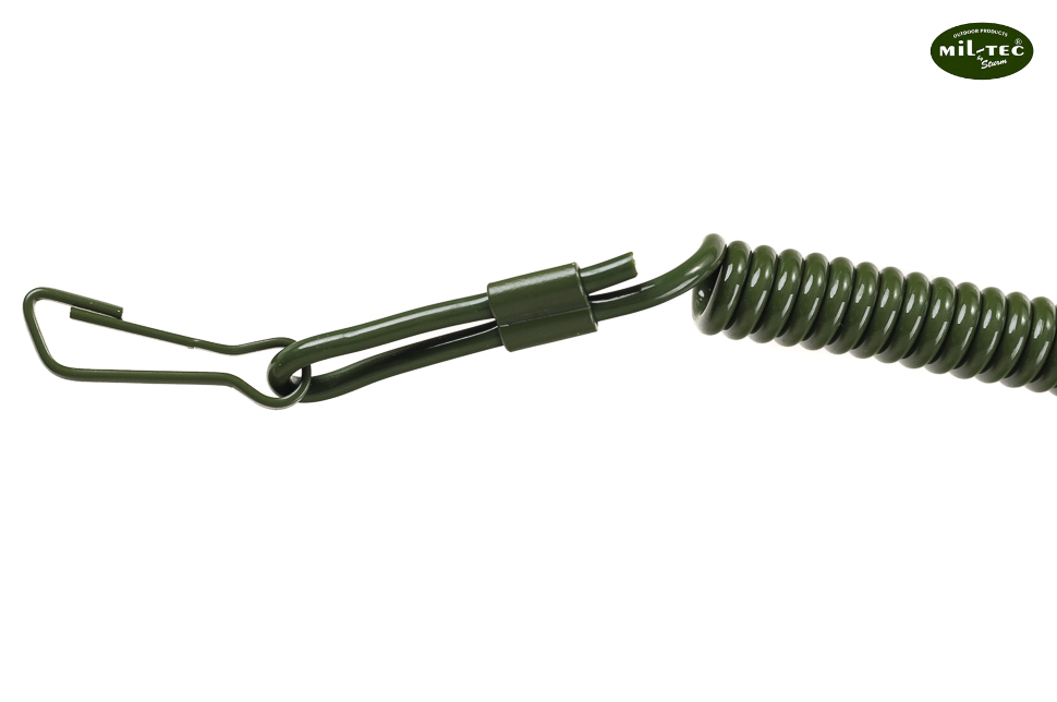 Оснащений надзвичайно міцним сердечником з KEVLAR. Стійкий до розриву навіть під високою силою. Гнучка оплетка з міцної гуми. Еластична гумка повертається до початкової довжини після розтягування - вона автоматично скорочує довжину повідця. Ремінь амортизує будь-яке потенційне падіння зброї. Широка шлевка для ременя шириною до 70 мм. Міцний карабін для кріплення зброї, виготовлений зі сталі.