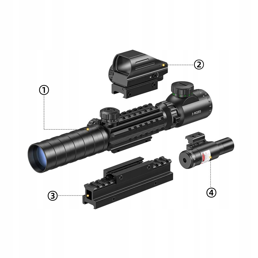 ТАКТИЧНИЙ ПРИЦІЛ 3-9X32 ДЛЯ КОМБО Гвинтівки - З ЧЕРВОНИМ ЛАЗЕРОМ