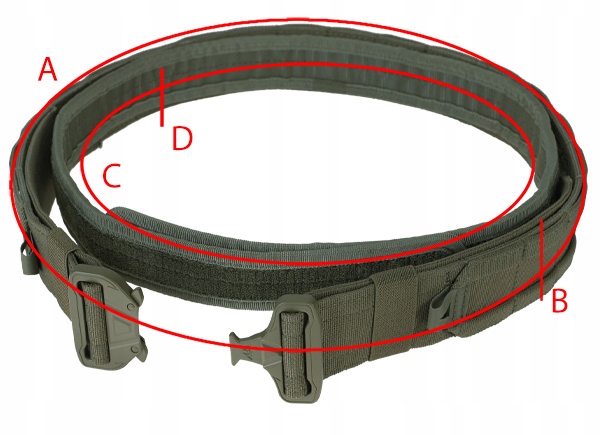 - A: Довжина основного пояса: 137 см (макс.), 90 см (мін.)