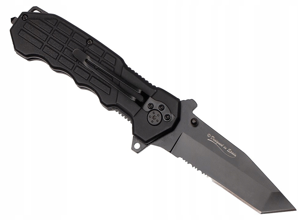 Чорний рятувальний ніжлегко та плавно відкривається завдяки фліпперу та двосторонній шпильці для великого пальця.