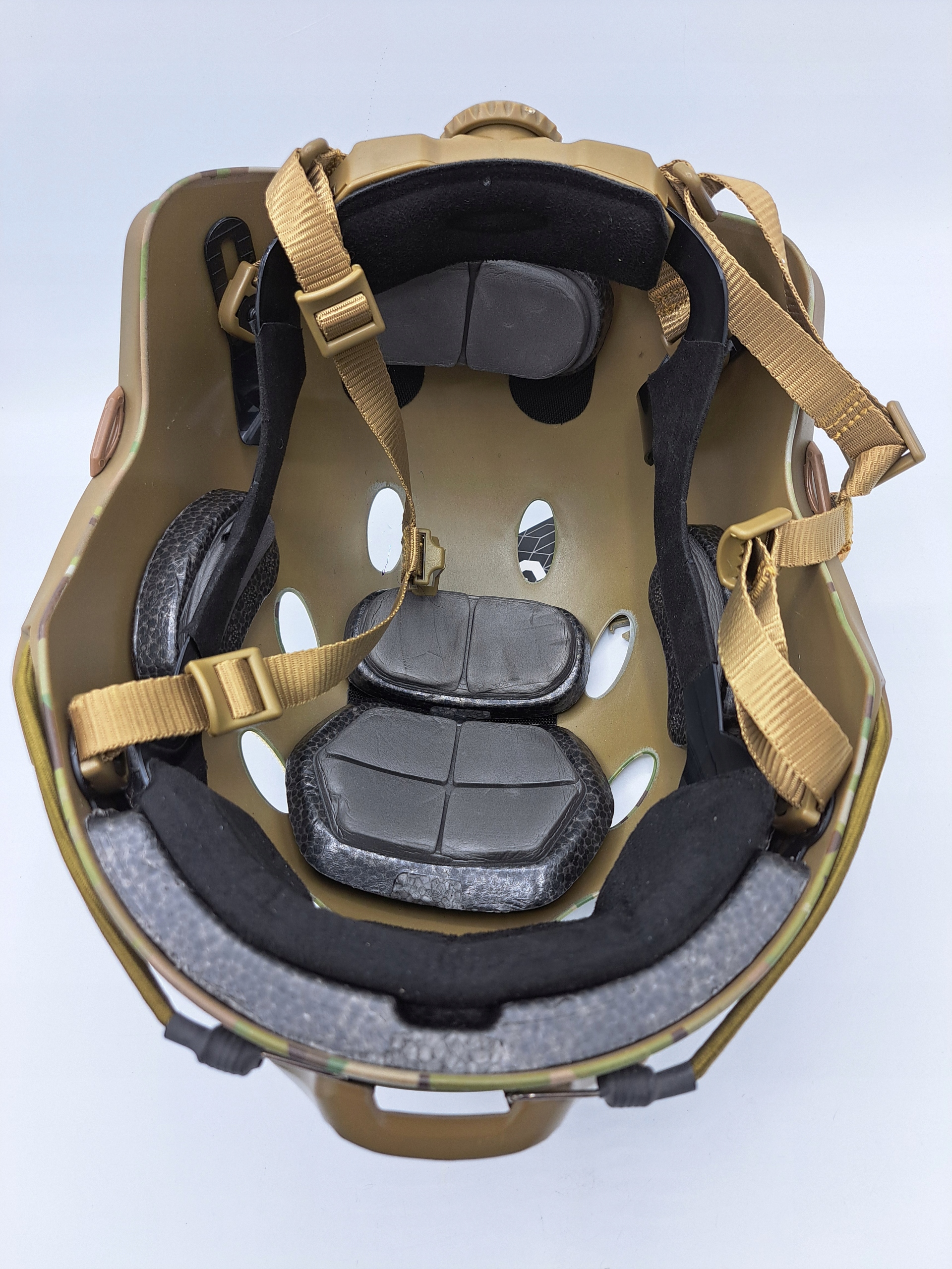 М'яка внутрішня підкладка, дуже добре підходить, передній тримач для окулярів нічного бачення (NVG). Маска для обличчя з захисними стеклами знімна. Його також можна використовувати лише як тактичний шолом.