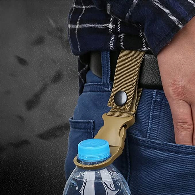 Тримач дозволяє прикріпити пляшку з напоєм до пояса, рюкзака або спорядження. Тримач підходить для ПЕТ пляшок зі стандартною пробкою (мінеральні води, газовані напої) об'ємом від 0,3 л до 2,5 л Пляшка завжди зверху, що економить місце в рюкзаку або сумці. Пряжка дозволяє швидко від'єднати і прикріпити пляшку. Надзвичайно корисне рішення під час подорожей, походів, їзди на велосипеді або роботи на відкритому повітрі.