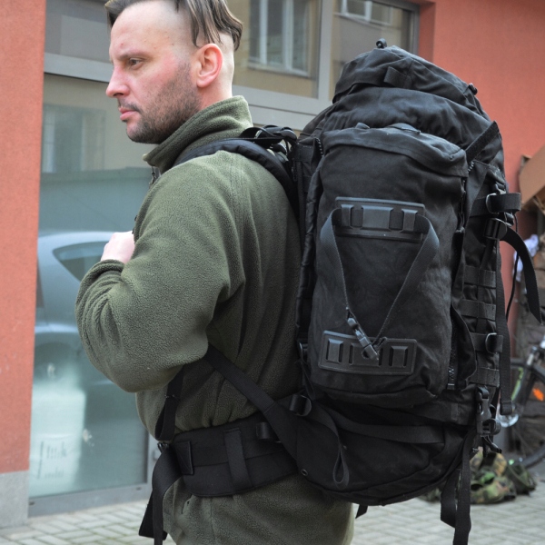 Рюкзак оснащений алюмінієвим каркасом, основне відділення оснащене додатковою кишенею. Димохід захищає вміст і дозволяє повністю використовувати місткість рюкзака. Основне відділення закривається тканинним клапаном з додатковою кишенею на блискавці. З боків рюкзака є бічні кишені, які можна використовувати або від'єднувати в залежності від потреби. Блискавка в нижній частині рюкзака полегшує доступ до вмісту в нижній частині основного відділення. Додатково рюкзак оброблений лямками, сумісними з системою кріплення MOLLE. Плечові лямки мають губки, що підвищують комфорт використання, а регульований стегновий ремінь допоможе розвантажити хребет.