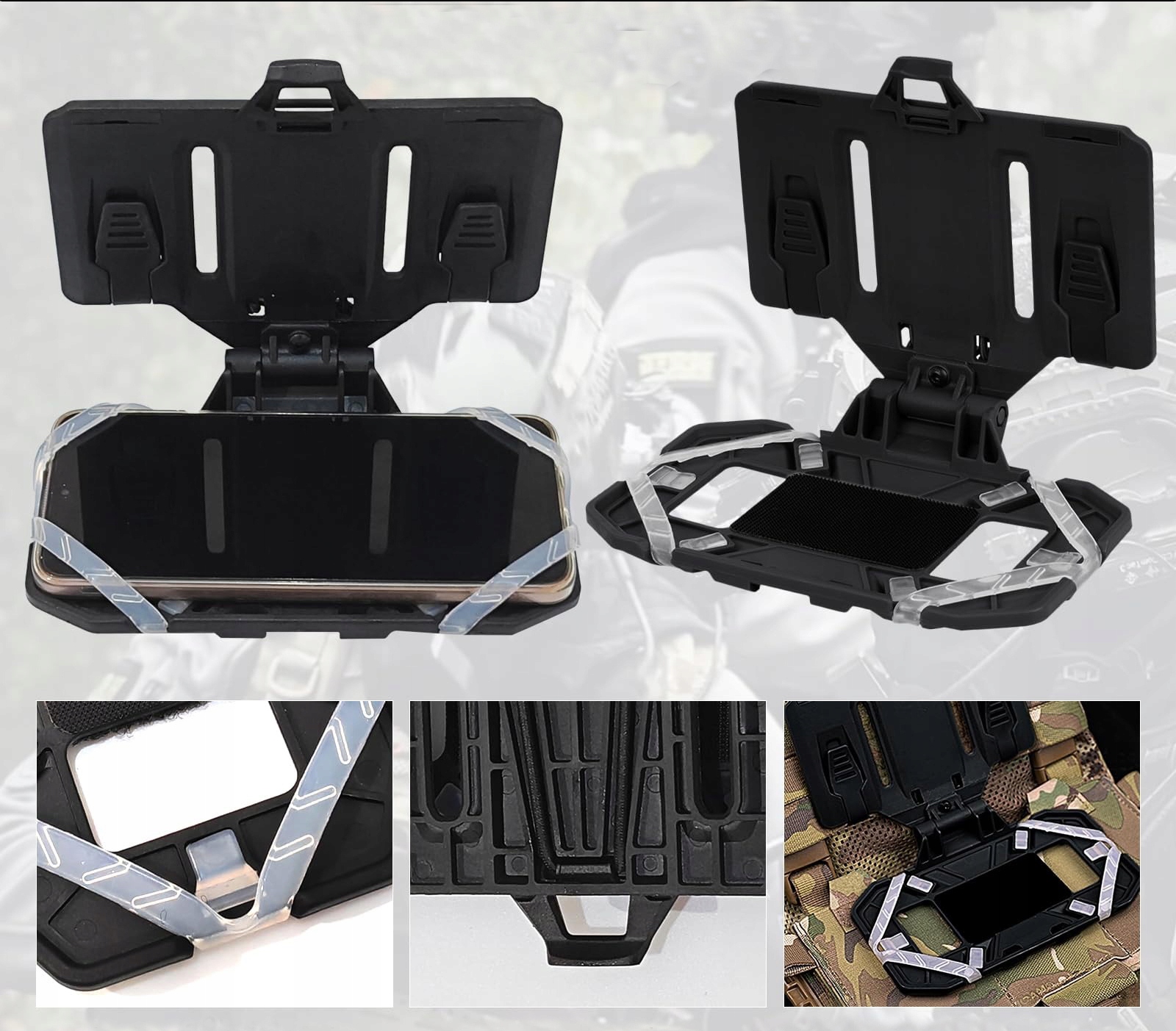 Тримачок для тактичного телефону MOLLE – ЧОРНИЙ, регульована збірка