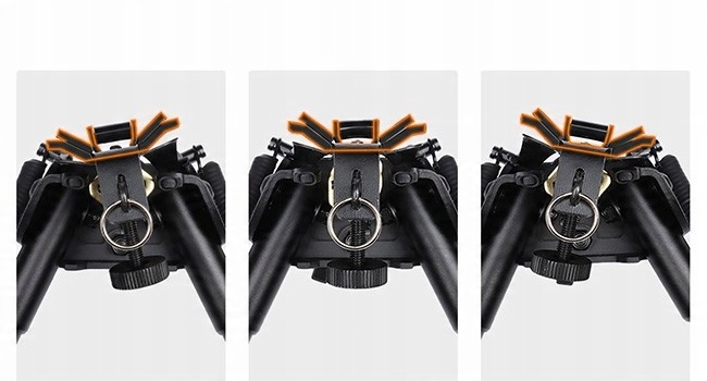 Регульована висота від 6 до 9 дюймів , швидкий розподіл, що допомагає пружинам та поверненню пружини стрільців, легко адаптується довжиною ноги до різних польових умов та сценаріїв зйомки, складених у більшу та використану.