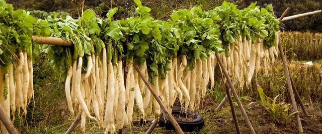 У вільному перекладі дайкон означає «великий корінь», і це пов’язано з величезними розмірами, які Японська редька може досягти. Залишившись наодинці, він досягає довжини близько метра і ваги до 50 кг. Звичайно, ніхто так довго не вирощує редис для харчових цілей, тому його збирають після того, як він досягне кількох кілограмів, потім сушать на сонці (щоб позбутися від зайвої води і надати пружності), а потім маринують у солі або інших добавках залежно від регіону Японії (це можуть бути, наприклад, рисові висівки, цукор, перець, водорості, спеції). Підготовлену редьку поміщають в посуд і маринують кілька місяців. Після маринування дайкон жовтіє, стає хрустким, пряним і солодким.
