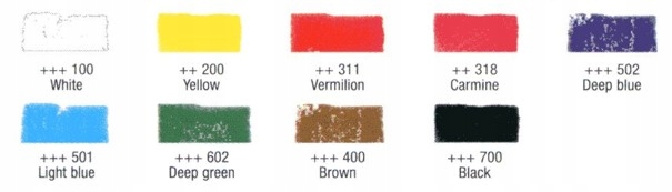 Можна також використовувати його в техніках штампування, наприклад, виготовлення штампів з дерева, пробки або лінолеуму. Він виготовляється на основі води, тому розбавлення або промивання інструментів не викликає труднощів. Машка непрозора і швидко висихає. Пропозиція включає 9 концентрованих кольорів, які можна вільно змішати.