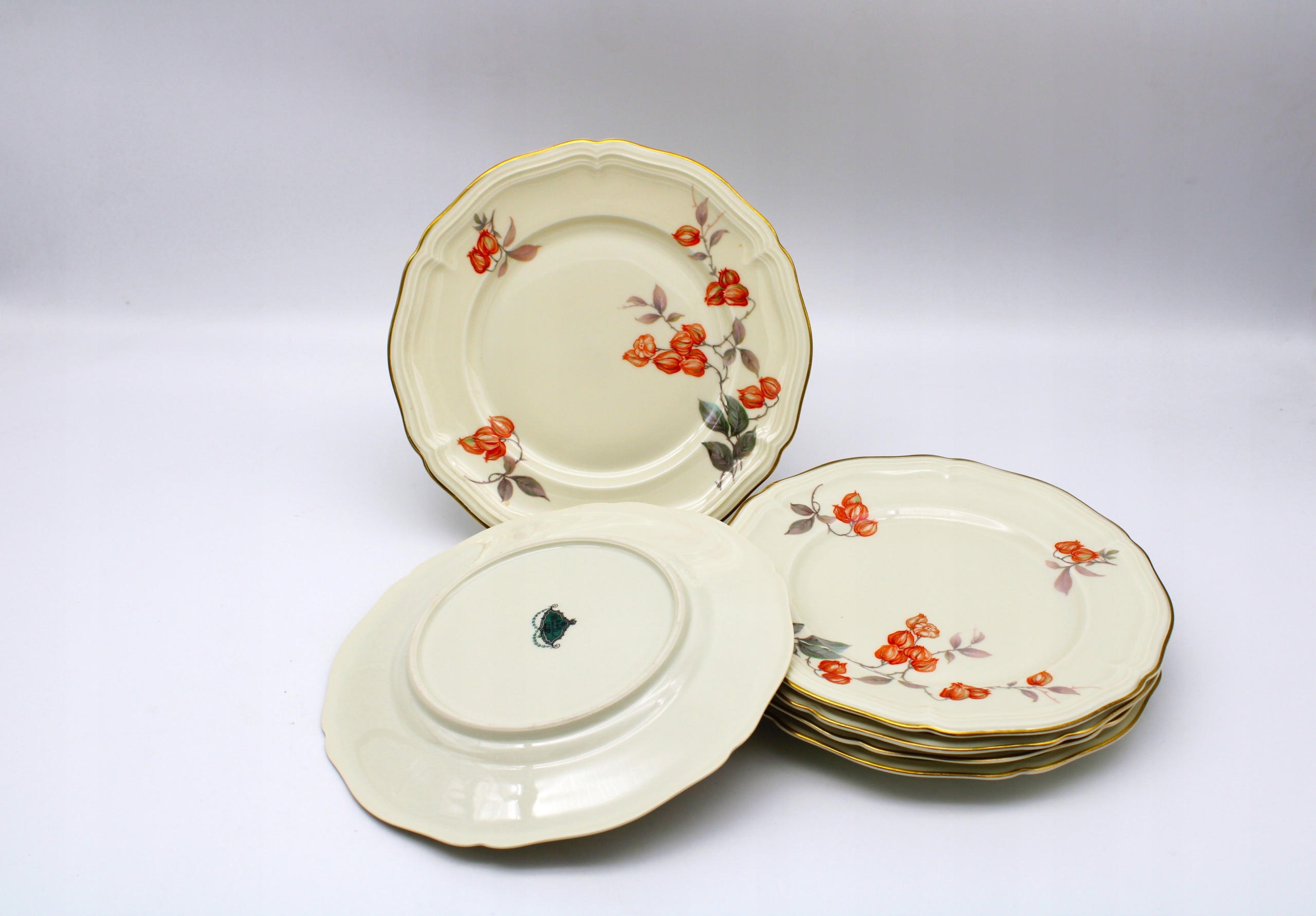 Я РЕКОМЕНДУЮ ДЕСЕРТНІ ТАРІЛКИ 6 ШТАТІВ, УСІ ДЕКОРАТУВАНІ ВРУЧНУ ФАРФОР РОЗЕНТАЛЬ З ФАБРИКИ ПОЦЕЛЯНИ У ЗЕЛЬБІ – БАВАРІЯ, ВИРОБЛЕНО МІЖ 1939 – 1956 РОКАМИ СТАН ТАКИЙ ЯК НА СКАНІ, ДУЖЕ ДОБРЕ
