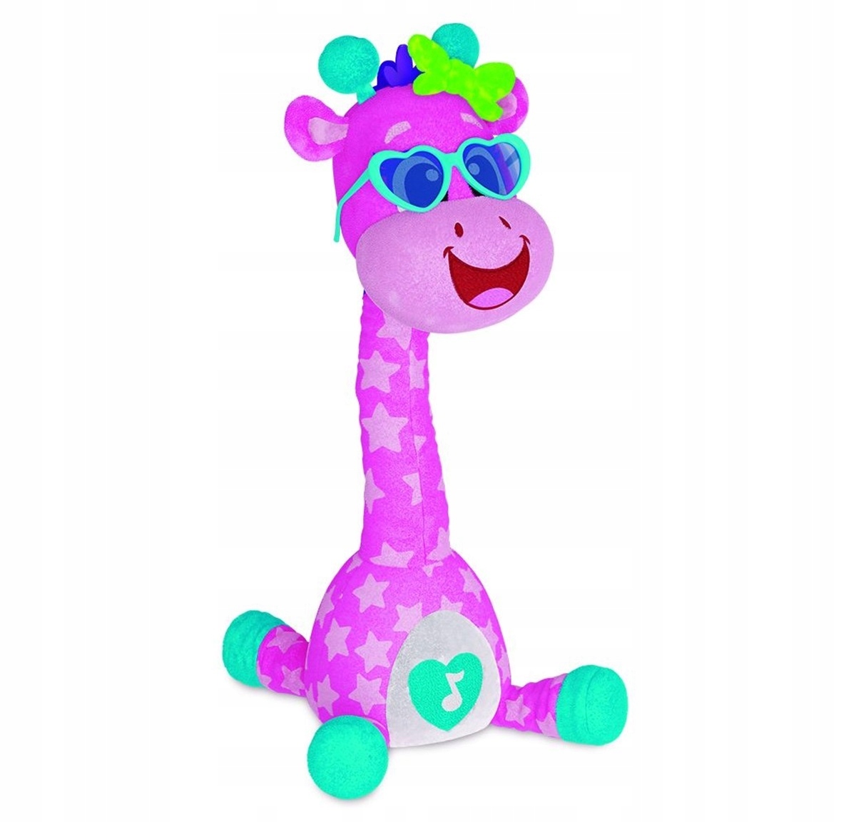 Ця енергійна тварина знає стільки ж у вигляді 12 різноманітних мелодій, під які він виконує кумедний танець, похитуючи шиєю в ритмі музики. Жираф оснащений кнопкою-зірочкою, що світиться, яка активує звуки та танці, додаючи додаткової радості.