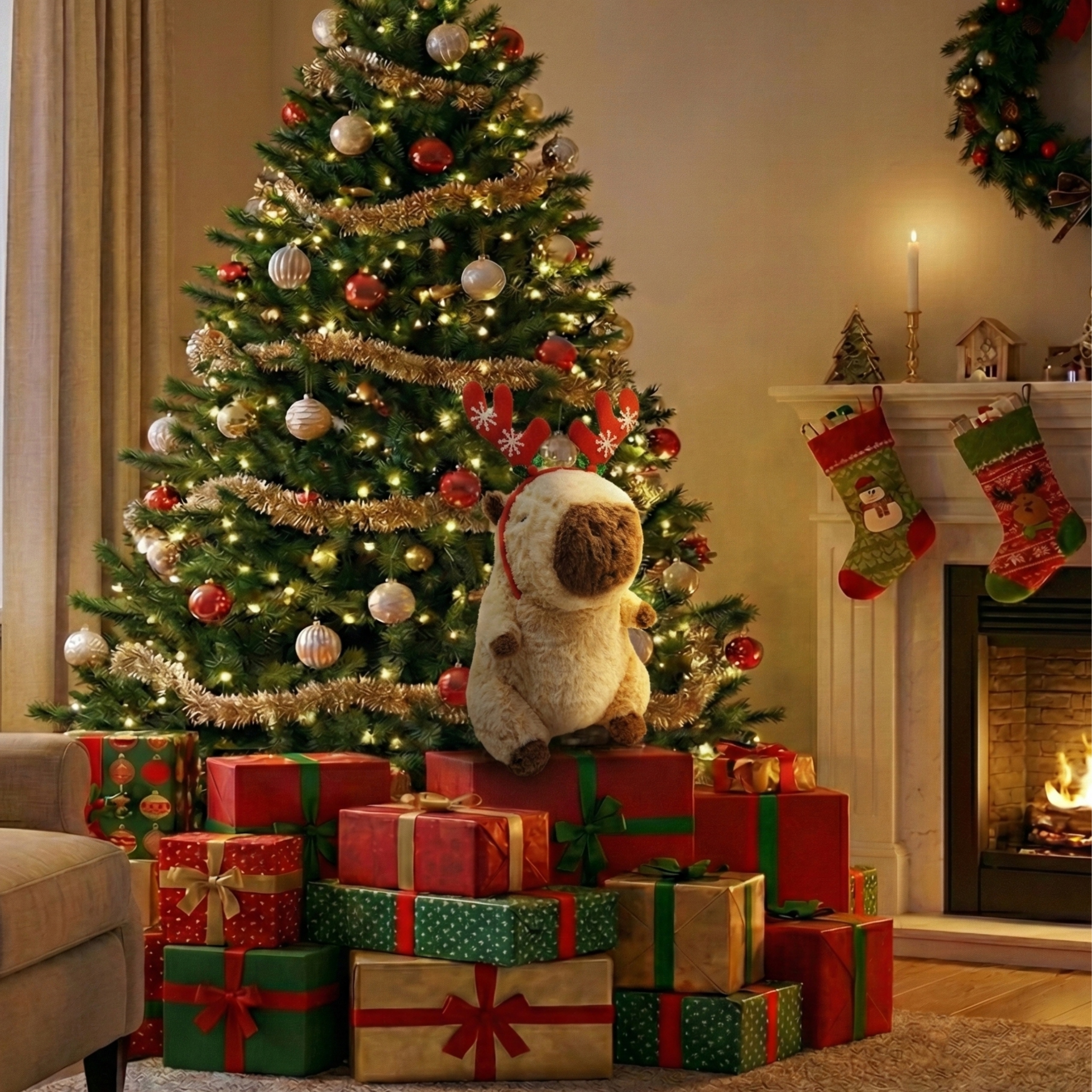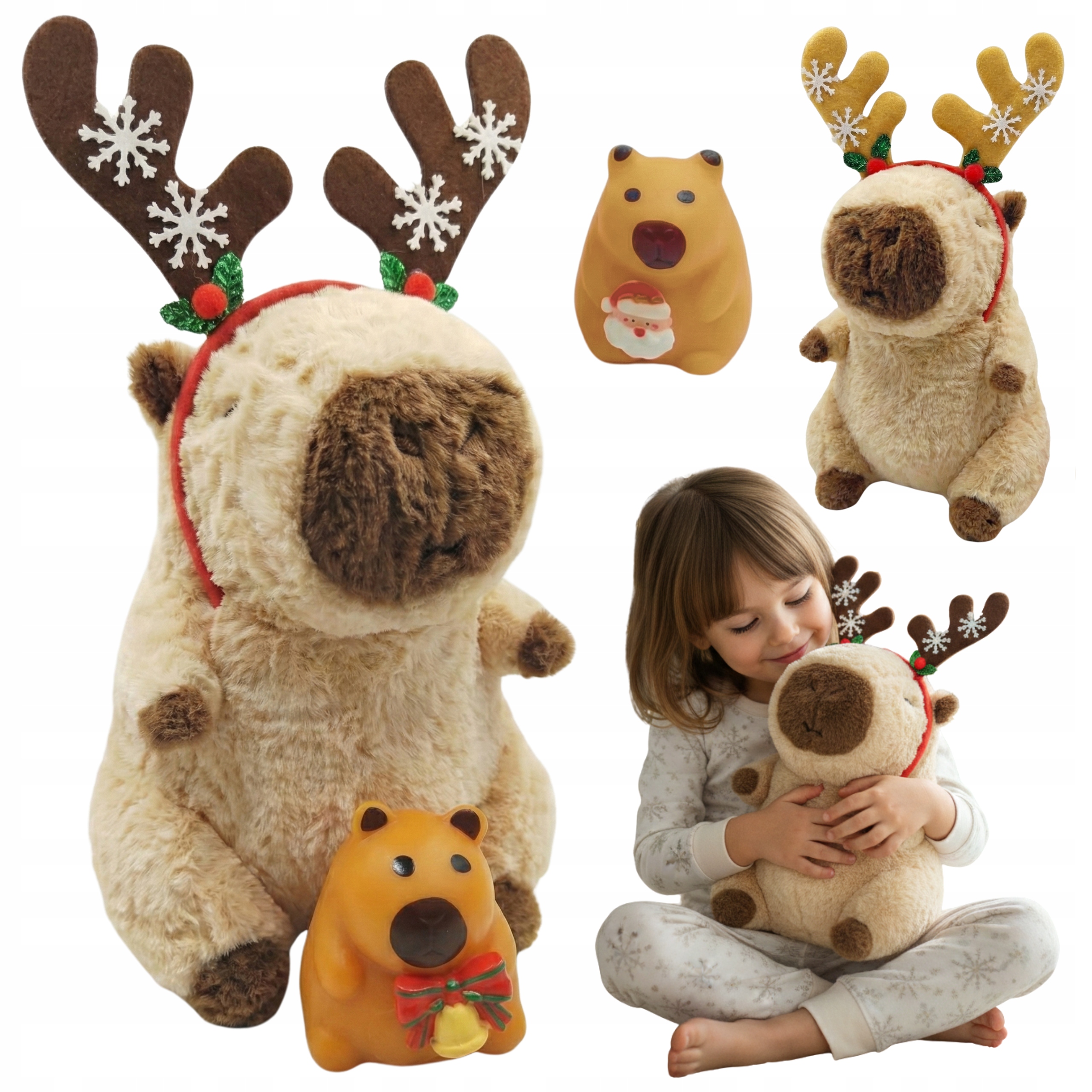 ✅ Плюшевий талісман Капібара + Різдвяний м’якенький ковпак + Пов’язка на голову північного оленя вибіркового кольору