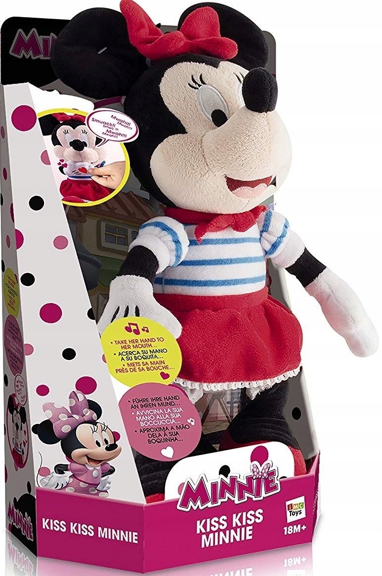 Мінні Маус, яку добре знають і діти, і дорослі, носить біло-блакитну блузку та червону спідницю. Талісман підходить для дітей від 18 місяців. Виготовлена з м'яких, приємних на дотик матеріалів. Коли ви піднесете руку до її рота, вона пошле гучний поцілунок, а коли ви притиснете її живіт, вона заграє веселу мелодію.