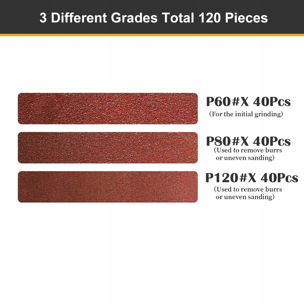 - 120 шт. стрічкових шліфувальних дисків 10 x 330 мм - сумісний з електричними напилками, 40 шт. кожен із зернистістю 60/80/120