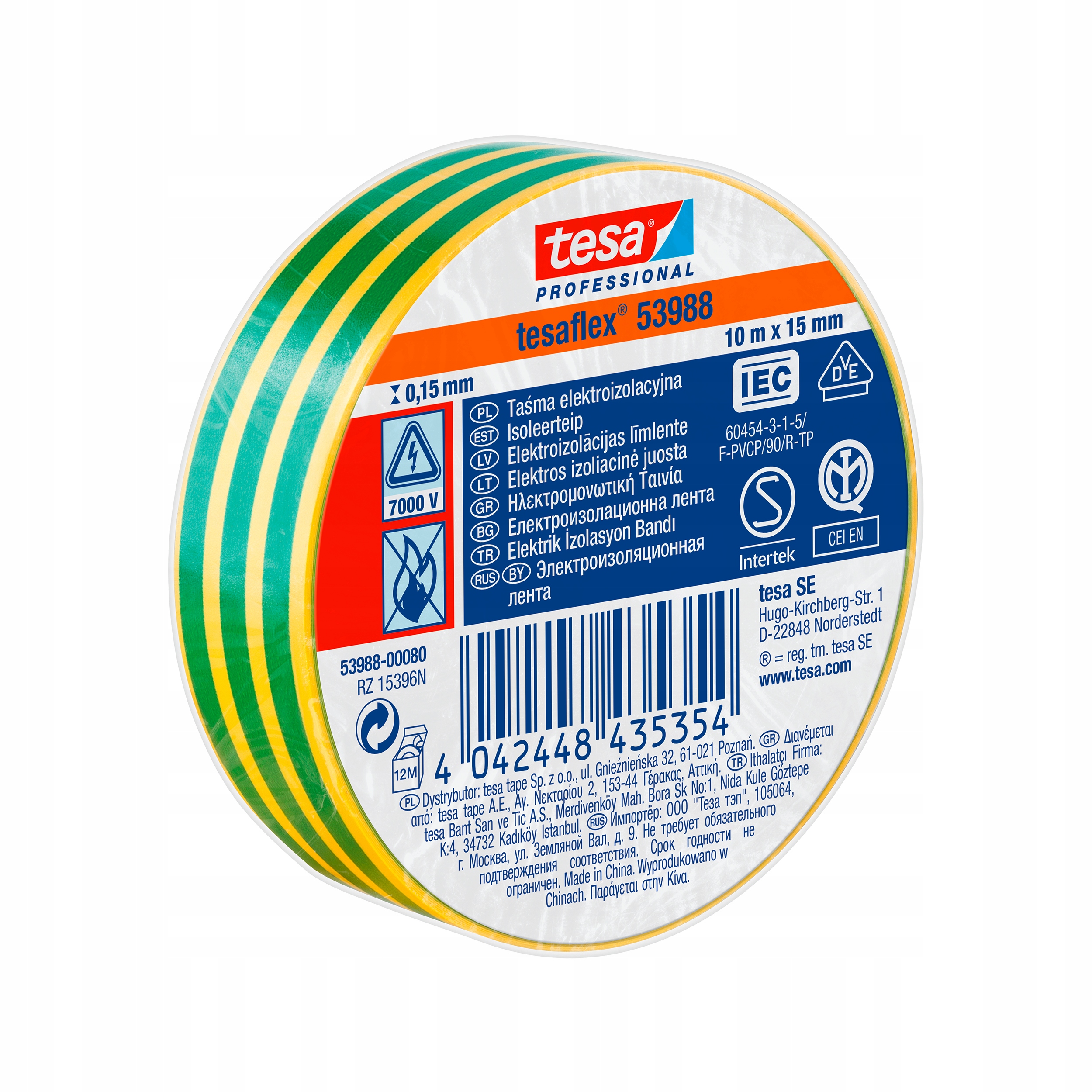 TAŚMA ELEKTROIZOL.7000V PCW 10M:15MM ZIELONO-ŻÓŁTA