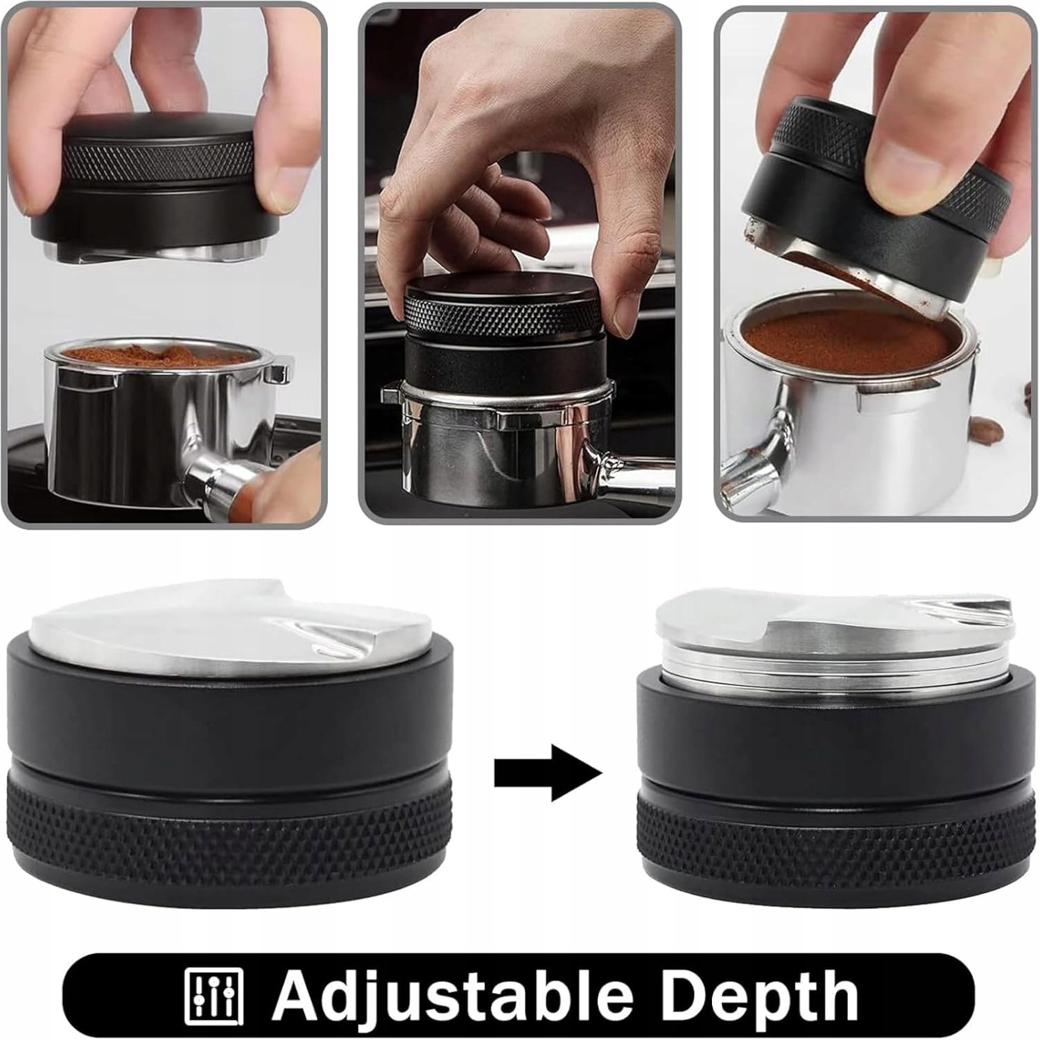 Металевий вирівнювач з матовою текстурою - ідеальне рішення для любителів кави. Його продумана конструкція з міцного алюмінієвого сплаву забезпечує надійність і комфорт використання. Естетичний чорний колір надає йому елегантності.