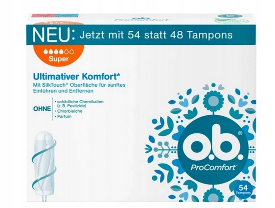 З поверхнею SilkTouch для особливо легкого введення та видалення. Тампони ob ProComfort Mini найкраще підходять для легкого та середнього дня. Оскільки тампони упаковані в індивідуальну упаковку, їх ідеально брати з собою в подорож. Практичний поворотний отвір дозволяє легко та швидко відкривати.