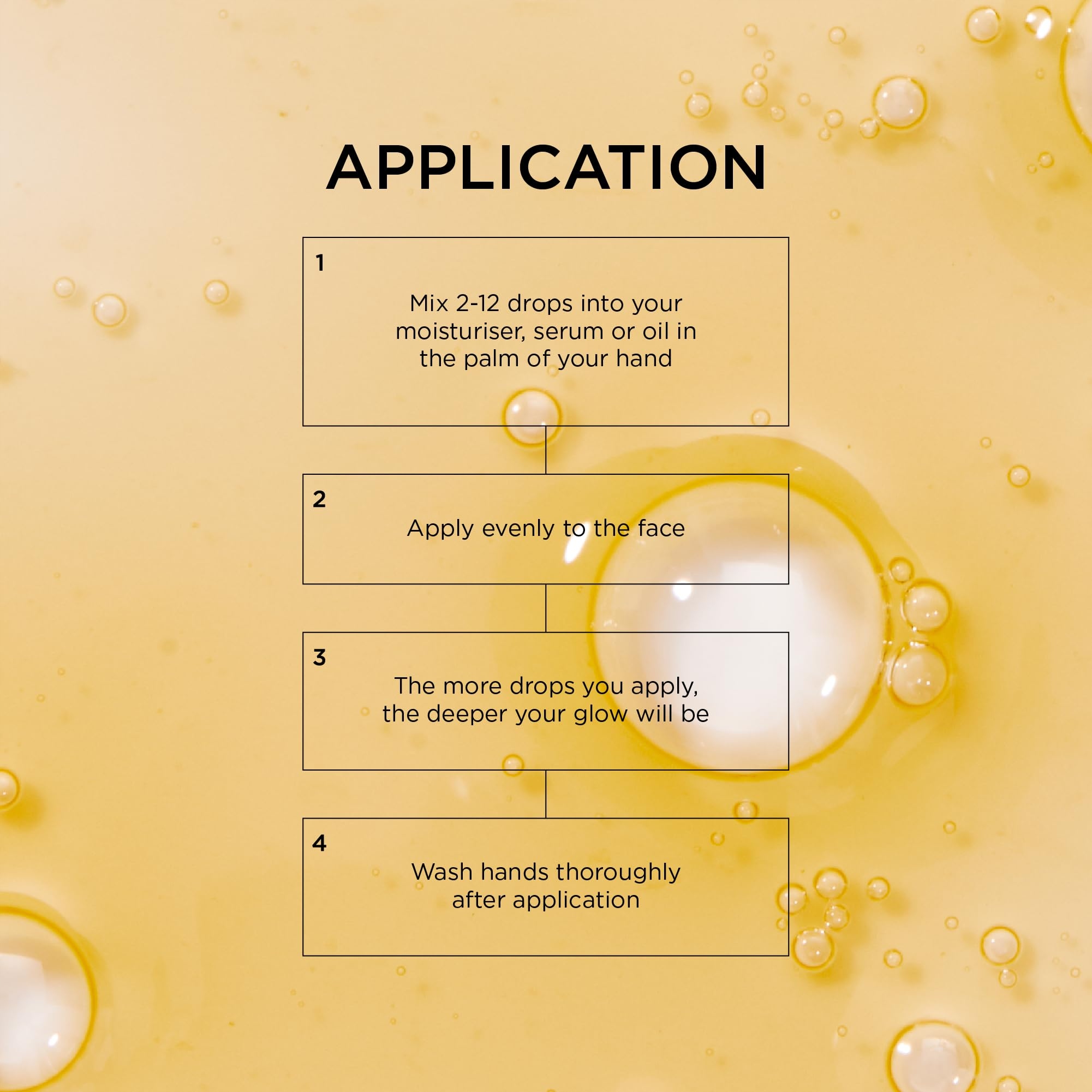 Для природного самостійного засмагу ці інноваційні краплі самостійного засобу перетворюють зволожуючий крем, сироватку або олію в власний самозахисник; Це так просто і працює з існуючим режимом догляду за шкірою без додаткових кроків: чим більше ви падаєте, тим більше світитесь