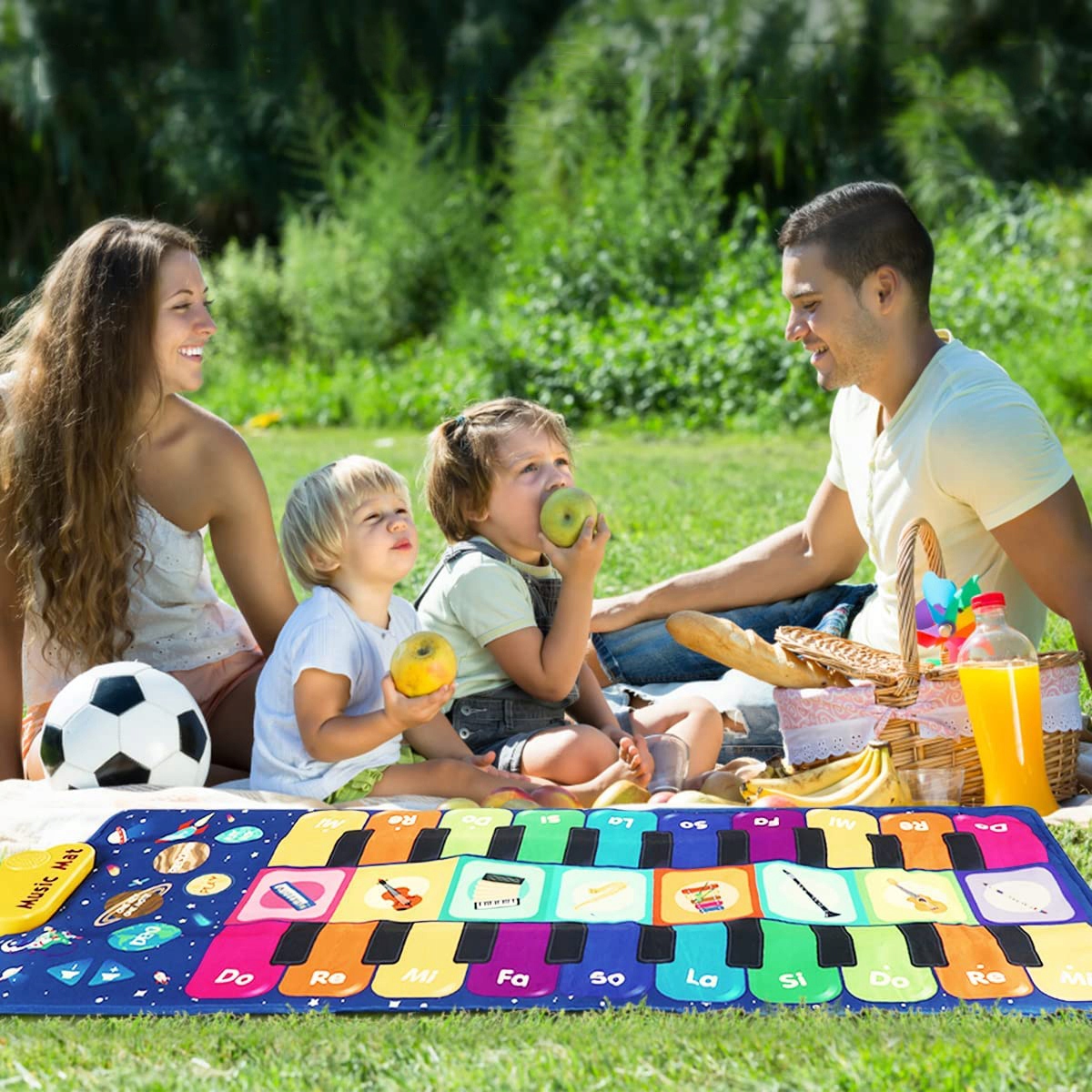 - Музичний килимок виготовлено з надзвичайно міцного, м’якого нетканого матеріалу без запаху,