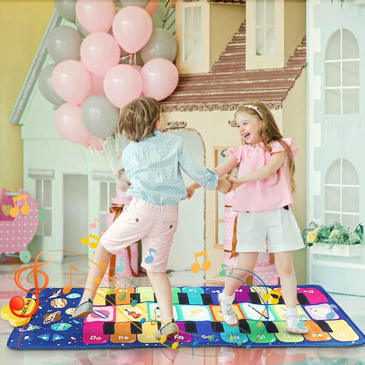 фортепіанний килимок для дітей має новий двосторонній дизайн клавіатури. З 8 інструментами, 10 римами та 20 тактильними клавішами фортепіано, багаті звуки змусять дітей насолоджуватися та розважати! Танцювальний килимок з фортепіано має 5 режимів функцій, які дозволяють дітям відчувати нескінченну творчу забаву. Розміри: 120x48 см.