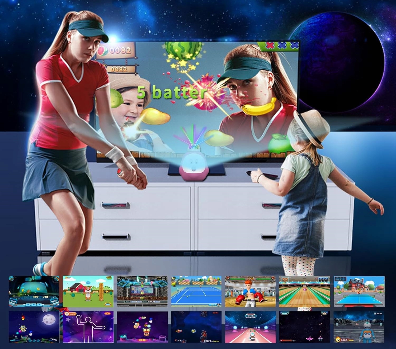 17 AR-ігор із камерою та світлодіодною диско-кулькою:цей танцювальний килимок для дітей і дорослих оснащений 17 популярними іграми з камерою AR. Ігри з доповненою реальністю за допомогою HD-камери дозволять вам відчути себе в грі, забезпечуючи захоплюючий ігровий досвід. Ви також можете зберегти фотографію гри з камерою як запис, щоб запам'ятати щасливий момент зі своєю родиною. Світлодіодна лампа диско-куля створить атмосферу вечірки, підходить для сімейних зустрічей і свят.