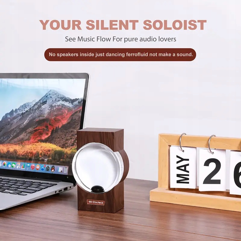 - Примітка: це НЕ динамік, а він НЕ видавати звуків. Корпус з міцного ABS пластику (малюнок, що імітує дуб), кришталеві декорації, високопрозоре скло. Феррофлюїд (порошок нанозаліза та чиста вода) є екологічно чистим та нетоксичним. Вбудований мікрофон, біле світлодіодне підсвічування, бездротове використання з вбудованим акумулятором (до 8 годин роботи).