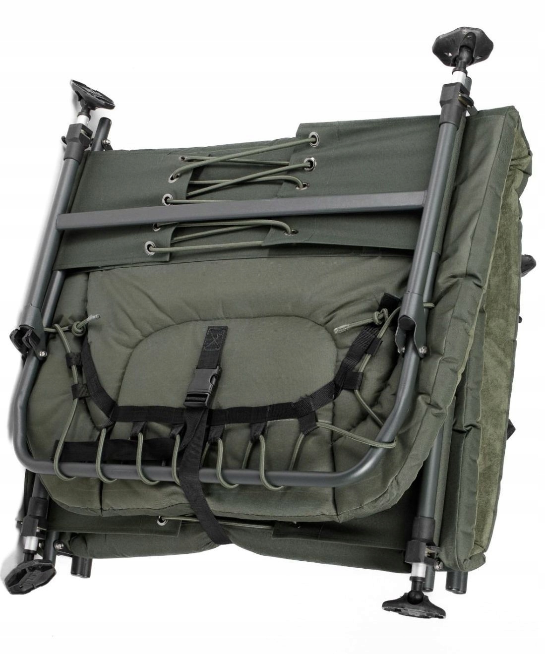 - Матрац: новий тип матраца з новим типом натягу гарантує жорсткість по всій довжині та підтримку поперекового відділу. Опорна тканина 600D Oxford надзвичайно міцна, а мікрофліс у центральній частині та приємний на дотик, але міцний зовнішній матеріал забезпечують максимальний комфорт під час тривалої риболовлі.