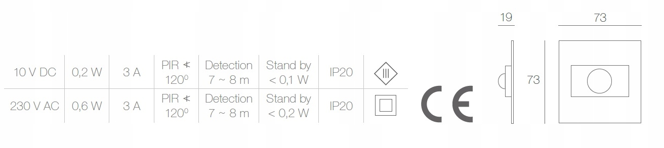 Датчик руху Tango PIR 120 Датчик руху 10V STEEL inox