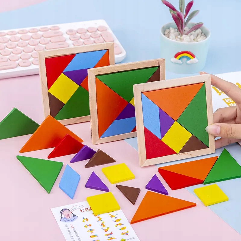 TANGRAM GRA LOGICZNA UKŁADANKA KREATYWNA KLOCKI DREWNIANE PUZZLE DLA DZIECI
