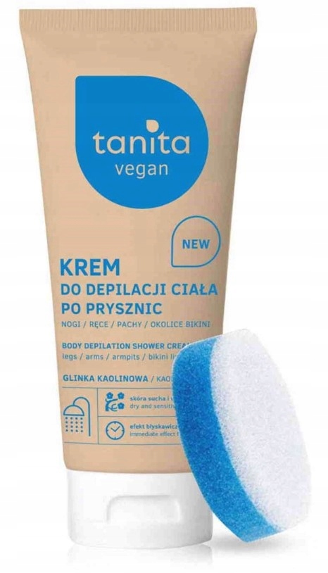 Tanita Vegan - крем для видалення волосся на тілі для душу з каоліновою глиною та матча - крем для видалення волосся. Це вид косметичного засобу, який дозволяє легко і безболісно видалити небажане волосся в домашніх умовах. У ньому міститься речовина, що руйнує структуру волосся – калієва сіль тіогліколевої кислоти. Гідроксид кальцію відкриває кутикулу волосся і дозволяє йому проникнути всередину. Крім того, сечовина, як стимулятор проникнення, сприяє проникненню речовини, що розчиняє волосся, у шкіру, де розташовані волосяні фолікули. Крем збагачений маслом ши, яке живить шкіру, запобігає її висиханню та живить її. До складу крему також входить каолінова глина, яка має очищаючі властивості та ніжно розгладжує шкіру. У свою чергу, екстракт чайного листя має зволожуючу та освіжаючу дію, а також відомий своїми антиоксидантними властивостями, що є цінним доповненням до догляду за шкірою.