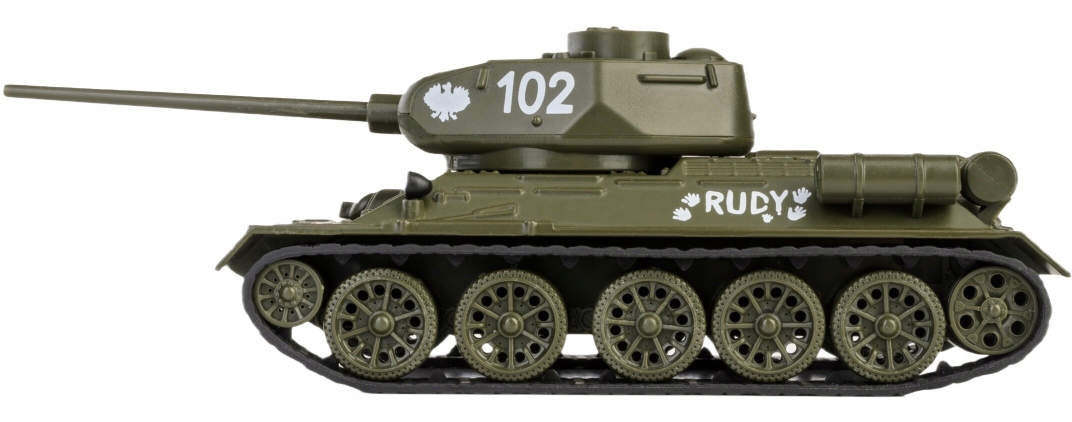 Танк Т-34-85 - Рудий 102 - герой культового польського серіалу «Чотири танкісти і пес», модель якого представлена в колекції. Колекційна модель в масштабі 1:43. Виготовляється з металевих і пластикових елементів. Це точно відтворена модель автентичного танка Т-34-85.