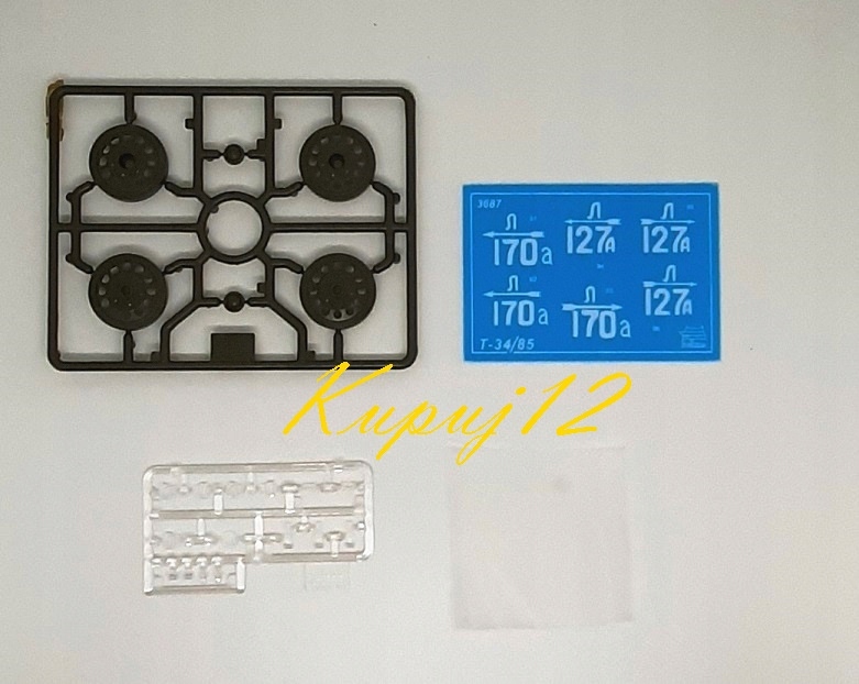 В набір входить пластиковий макетний комплект радянського танка Т-34/85 (випуск 1944 року)