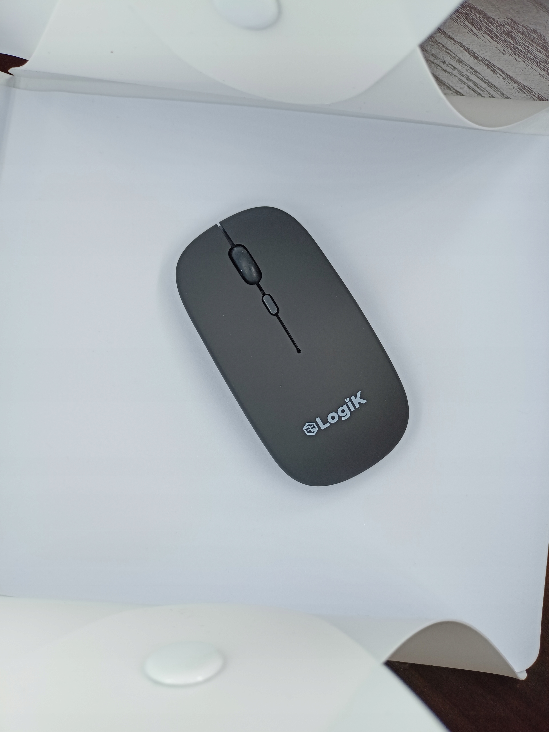 Пропоную бездротовумишку від відомого бренду LogiK, тиха, зручна і дуже тонка.Є можливість віддаленого підключення Wi-Fi (приймач USB). Миша має вбудований акумулятор, завдяки якому вона працює дуже довго на одному заряді!