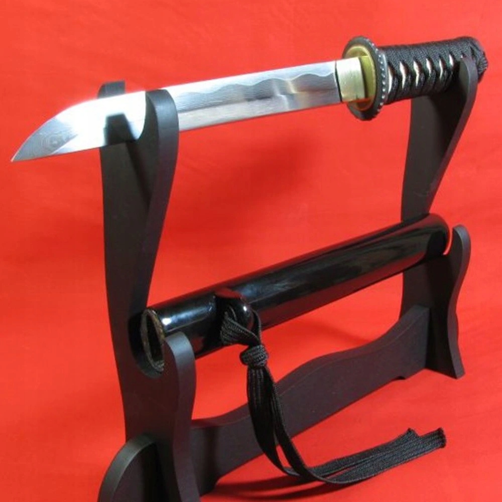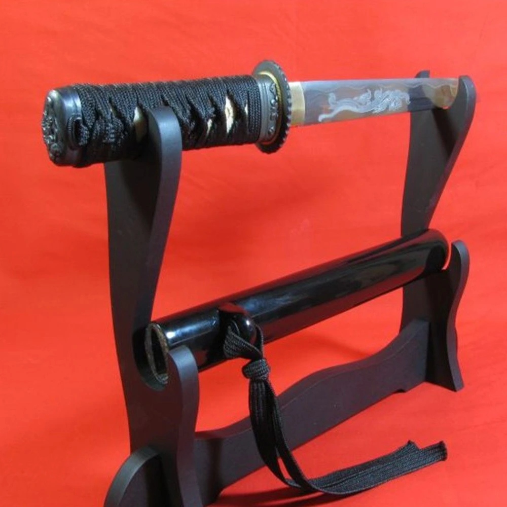 підроблений японський меч tanto з відшліфованим наслідуванням загартовування (гальма). Гострий (ґрунтовий) самурайський Танто -меч знайде своє використання як прикрасу, але також для активних вправ бойових мистецтв. Tanto не підходить для різання більш важких матеріалів. Сталь не частково хмарна (Хамон лише відшліфований), вона має низьку твердість 48 HRC. Косиння жорстких матеріалів залишатимуть сліди на лезі меча. Привабливе і гостре лезо, чорне блискуче Сая плюс цука (ручка), все це робить Танто дуже цікавим і бажаним. Танто зберігається в полотні та паперовому коробці. Компанія dellinger не несе відповідальності за збитки та пошкодження, заподіяні під час використання. Сховати Танто поза дітьми! Кожне маніпулювання самурайським мечем відповідає за власною відповідальністю. Пам'ятайте, що у вас в руках фатальна зброя !