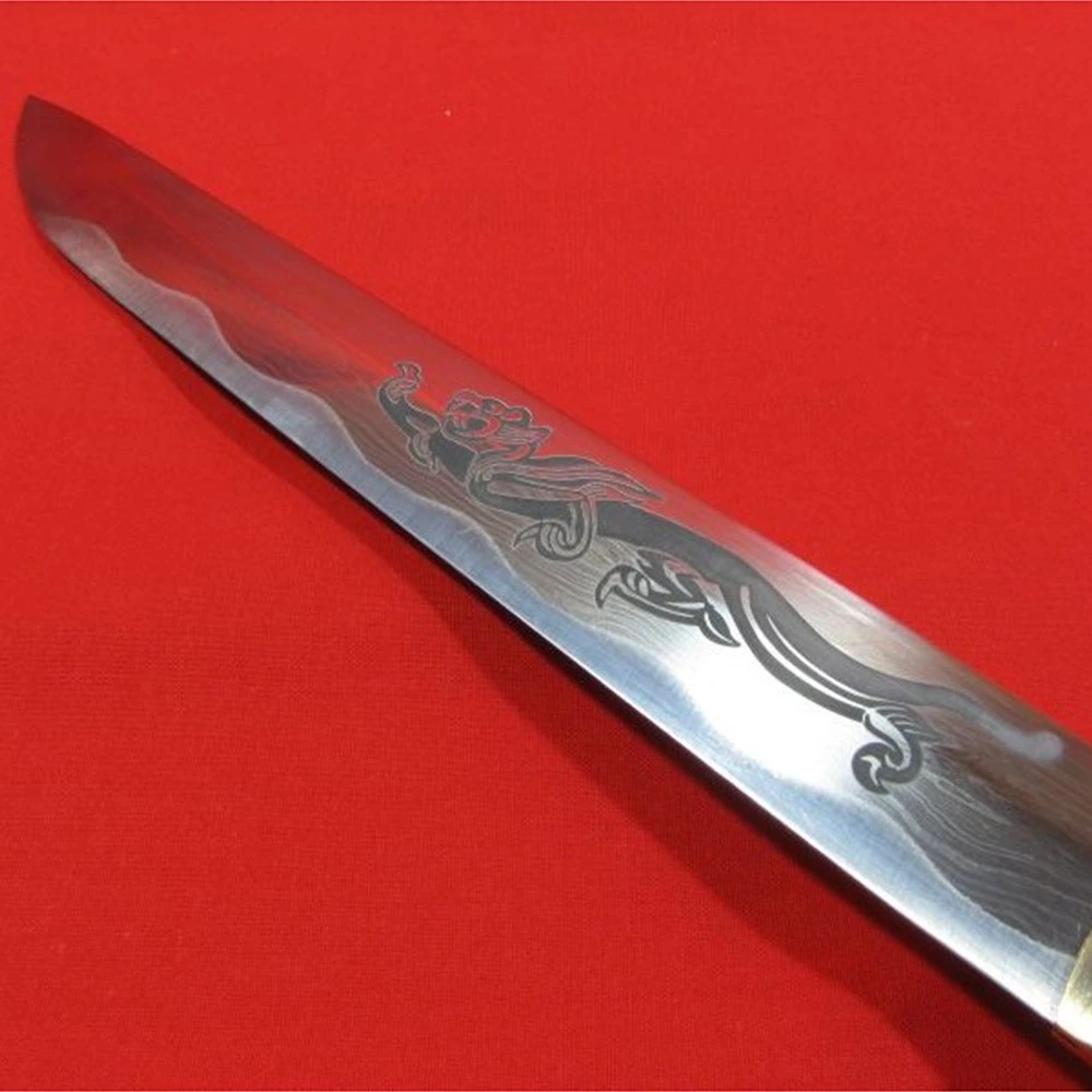 - Матеріал леза - вуглецева сталь AISI 1045 з пісковикованим драконовим малюнком