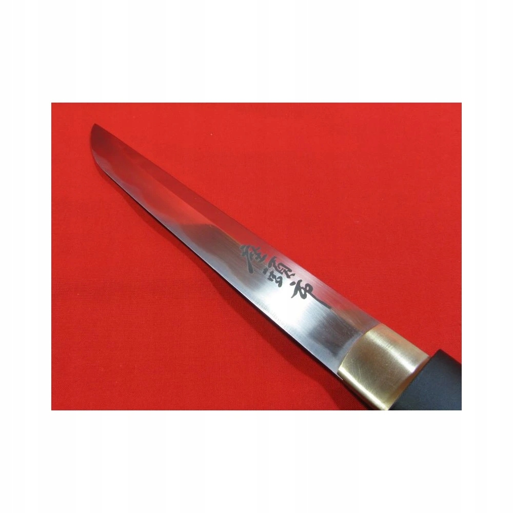 підроблений японський меч tanto з відшліфованим наслідуванням загартовування (гальма). Гострий (ґрунтовий) самурайський Танто -меч знайде своє використання як прикрасу, але також для активних вправ бойових мистецтв. Tanto не підходить для різання більш важких матеріалів. Сталь не частково хмарна (Хамон лише відшліфований), вона має низьку твердість 48 HRC. Косиння жорстких матеріалів залишатимуть сліди на лезі меча. Привабливе і гострого леза, чорний матовий Сая плюс цука (ручка), все це робить Tanto дуже цікавим і бажаним. Танто зберігається в полотні та паперовому коробці. Компанія dellinger не несе відповідальності за збитки та пошкодження, заподіяні під час використання. Сховати Танто поза дітьми! Кожне маніпулювання самурайським мечем відповідає за власною відповідальністю. Пам'ятайте, що у вас в руках фатальна зброя !