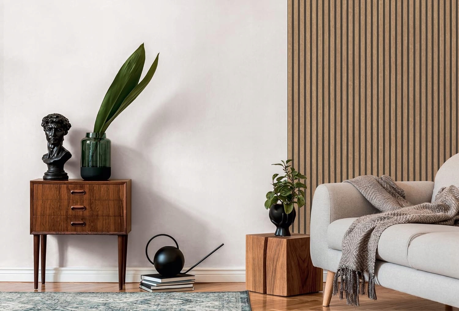 Шпалери були точно розроблені, щоб імітувати зовнішній вигляд традиційних дощок, надаючи кімнаті тонкий, але виразний акцент.