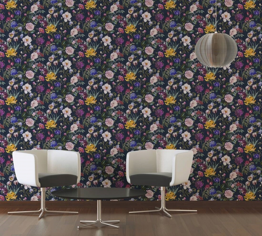 Tapeta w KOLOROWE KWIATY na ciemnym TLE