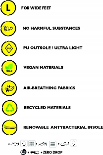 Гумова та нековзна підошва забезпечують безпечне використання. Підошва ZERO DROP дуже тонка, гнучка вздовж і впоперек, що дозволяє дитині рухатися природно.