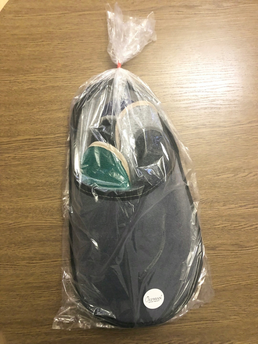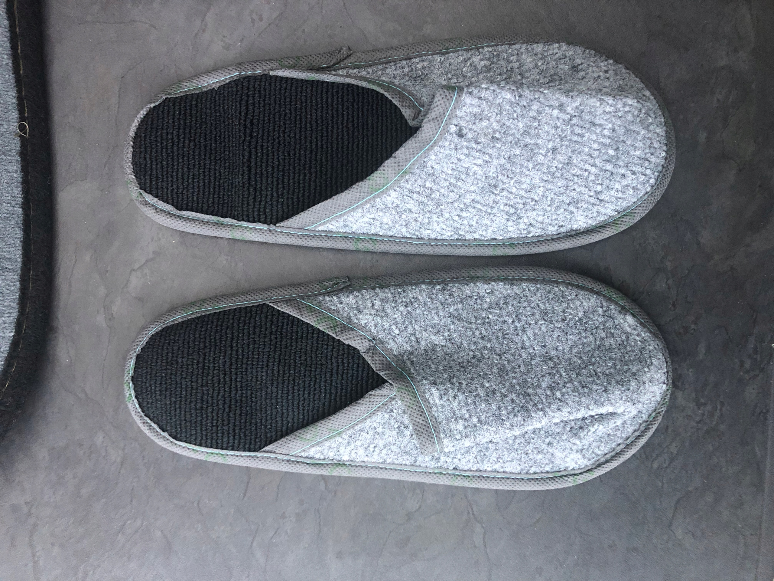Тапочки упаковані випадковим чином різних кольорів. Основна кишеня (великий тапочок) сірого кольору, як на малюнку.